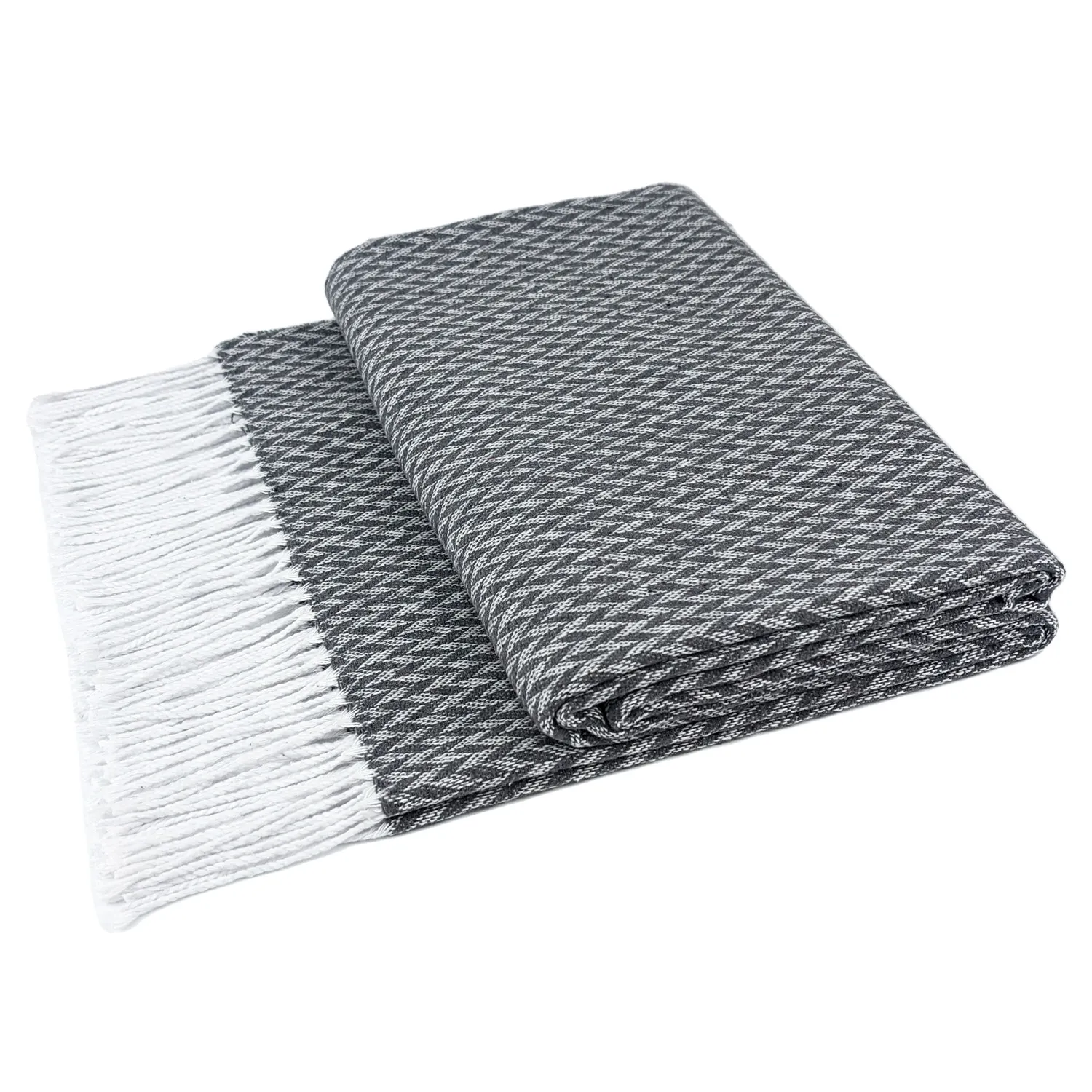 Основной материал пледа — хлопок, который известен своей устойчивостью и мягкостью. Бахрома добавляет интересный вектор дизайна и стильный акцент.