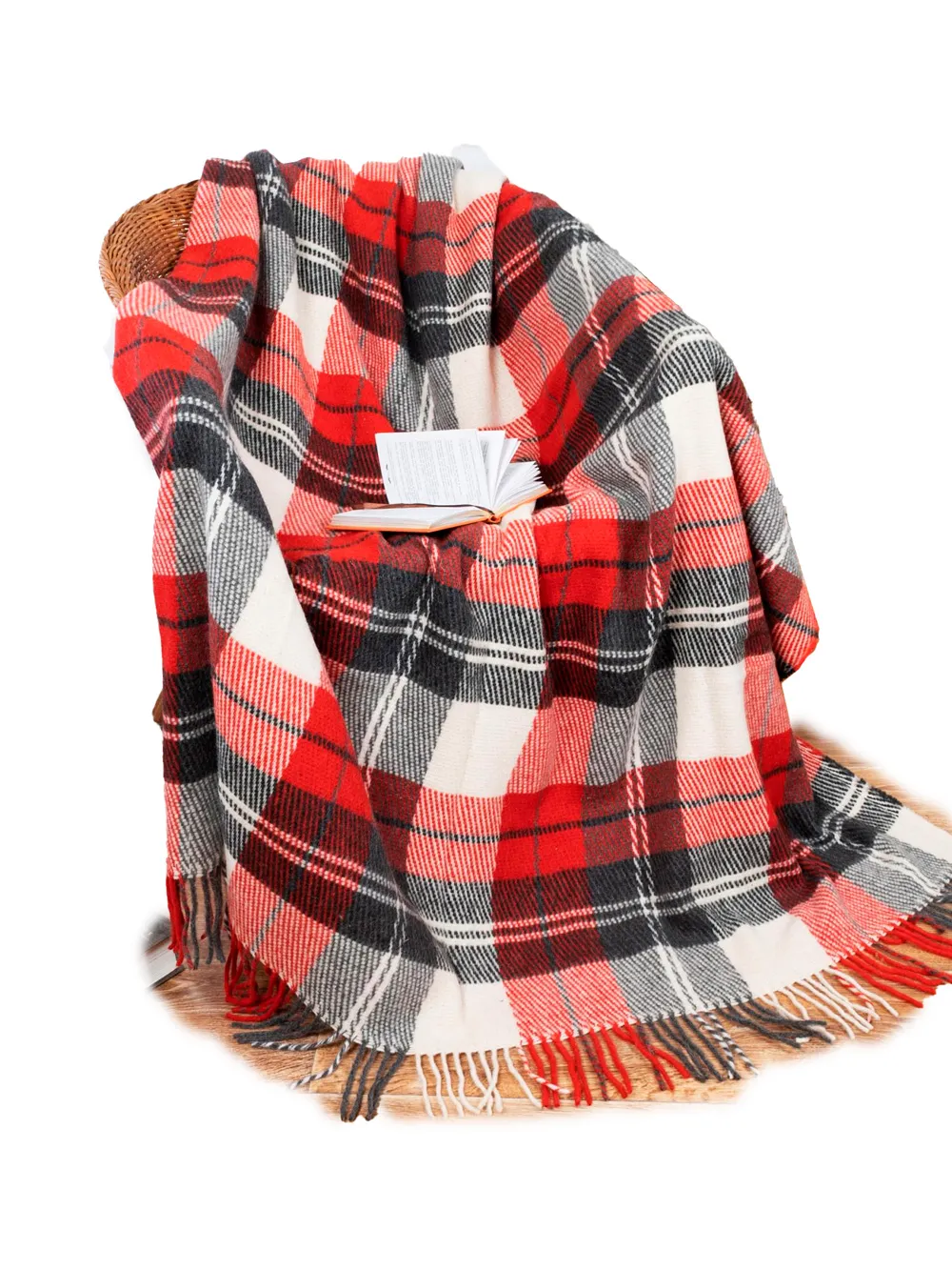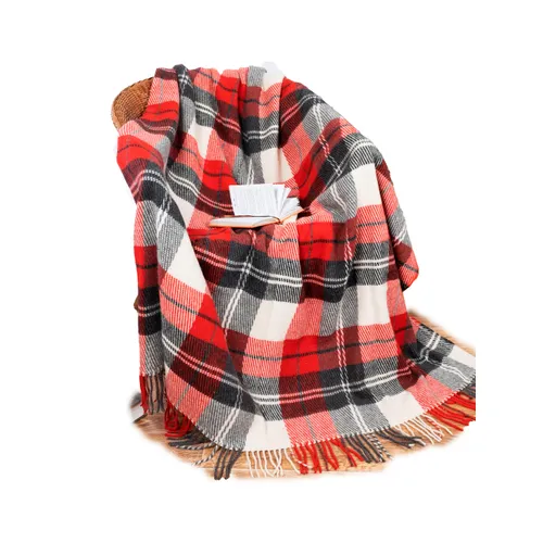 Расцветка пледа — классическая шотландская клетка, которая придаст вашему дому уют и тепло. Бахрома, включенная в размер пледа, добавляет элегантности.