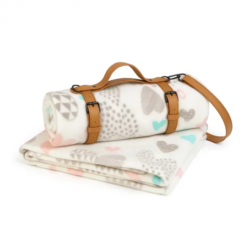 Плед тревел легкий флісовий Ніжні серця 150x200 см з ременем Love You виконаний із м’якого, високоякісного флісу, який забезпечує тепло і комфорт в будь-яких умовах. Розмір 150x200 см оптимальний для використання як дома, так і під час поїздок або прогулянок. Ніжний пастельний принт із сердечками додає виробу особливого затишку та ніжності, а також робить його універсальним для різних інтер’єрів і стилів.