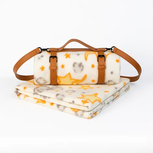 Плед «Месячная сказка» поєднує легкість, функціональність і привабливий дизайн, що не завжди зустрічається у аналогів. Унікальний ремінь-держатель із ручкою є значним плюсом для тих, хто часто подорожує.
