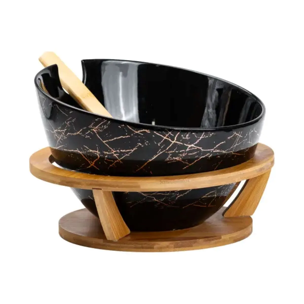 Салатница на бамбуковой подставке с ложкой Ø 25 см черная HP1245