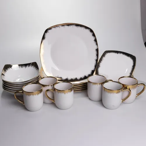 Столовый набор посуды тарелок и чашек 24 предмета на 6 персон "Геометрия" фарфоровый SD-24-1 сочетает в себе современный дизайн и классическую утонченность. Этот набор идеально подойдет для тех, кто стремится к уникальной сервировке, предпочитая квадратные формы с мягкими закругленными углами, которые одновременно стильны и практичны.