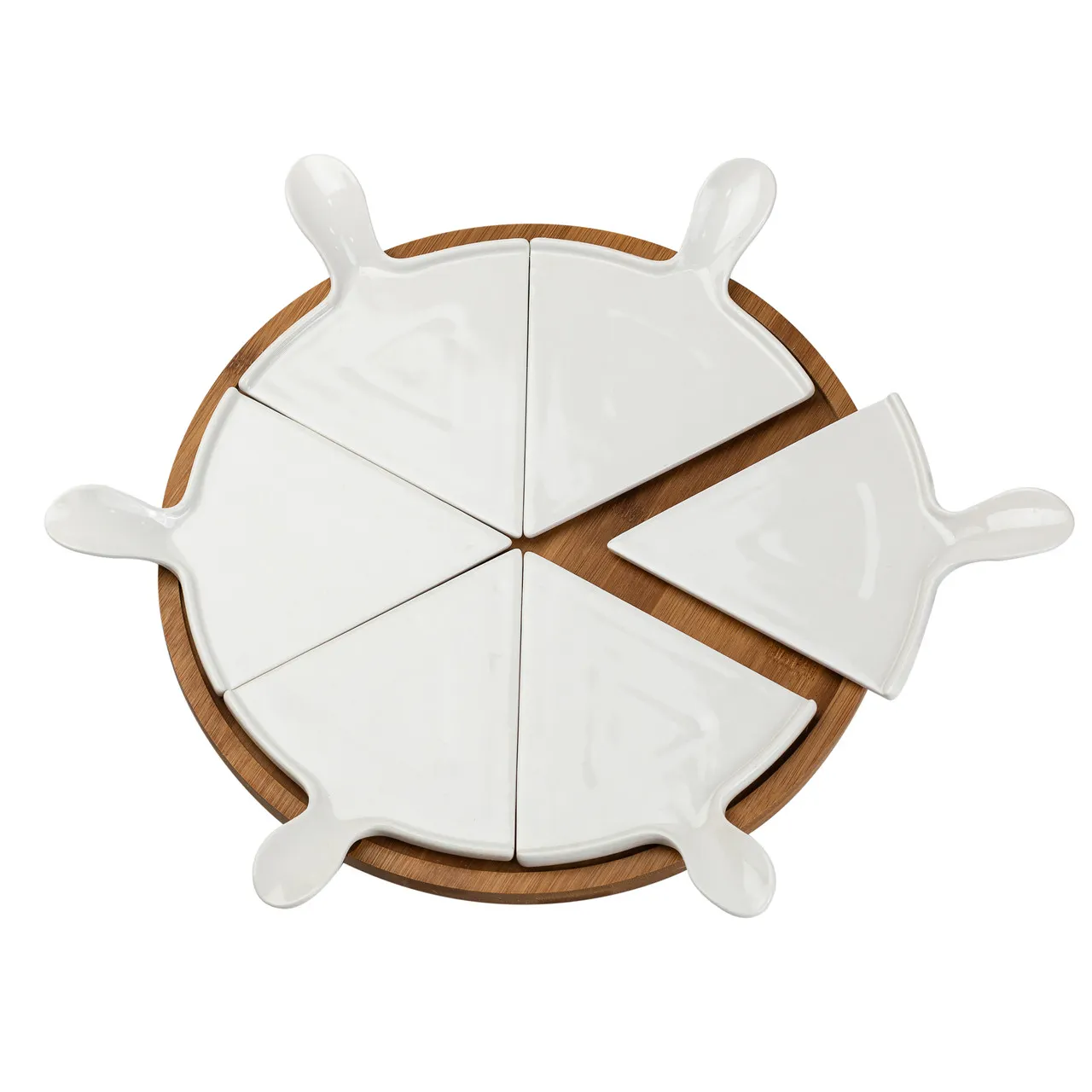 Тарелка для пиццы 28 см керамическая вращающаяся, бамбуковое основание HP1248