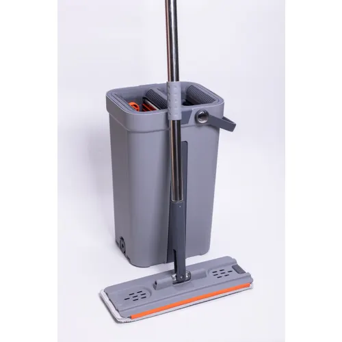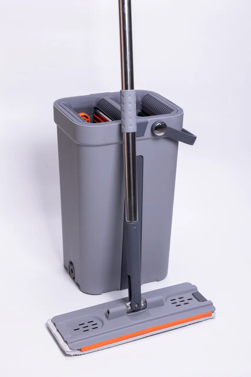 Телескопическая швабра с плоской насадкой и двухсекционное ведро представляет собой продуманный набор для эффективной и удобной уборки твердых напольных покрытий. Ведро выполнено из прочного пластика и оснащено центральной вставкой, которая разделяет пространство для чистой и грязной воды. Это предотвращает повторное загрязнение пола и сохраняет процесс мытья максимально гигиеничным.