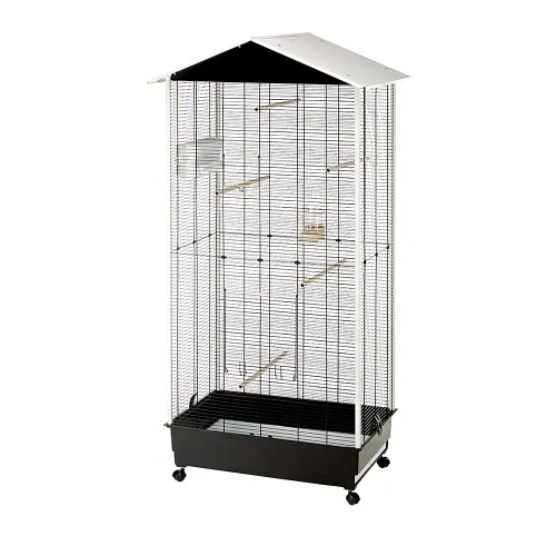 Вольер Nota представляет собой просторное и удобное жилище, специально разработанное для содержания канареек и других маленьких птиц. Его размеры 76,5 x 57 x 161,5 см обеспечивают достаточное пространство для активного передвижения и комфортного размещения нескольких птиц одновременно. Корпус выполнен из прочной окрашенной стальной проволоки с металлической крышей, что гарантирует длительный срок эксплуатации и надежную защиту от внешних факторов.