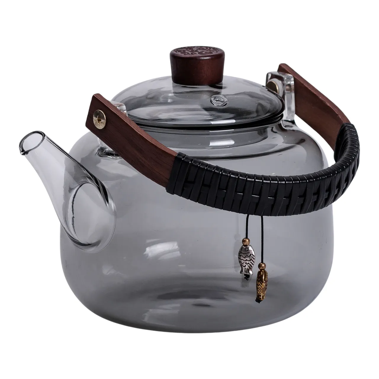 Характеристики "Заварник стеклянный для чая 0.8 л чайник для заваривания с деревянной ручкой черный HP-34-37"