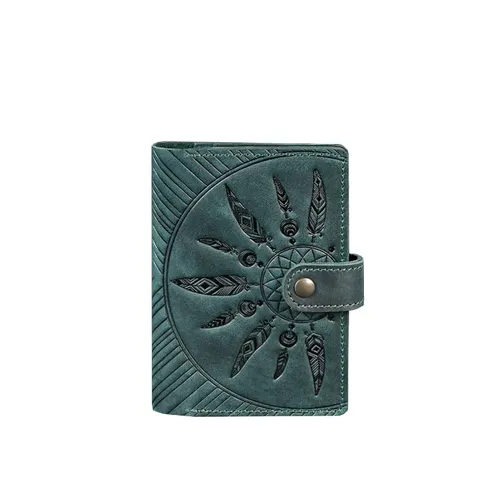 Женский кожаный переплет для паспорта 3.0 Инди зеленый – это стильный и функциональный аксессуар, выполненный из натуральной кожи Crazy Horse. Дизайн обложки выделяется оригинальным тиснением в виде ловца снов на изумрудном фоне, что придает ей уникальность и изысканный внешний вид, способный дополнить любой образ.